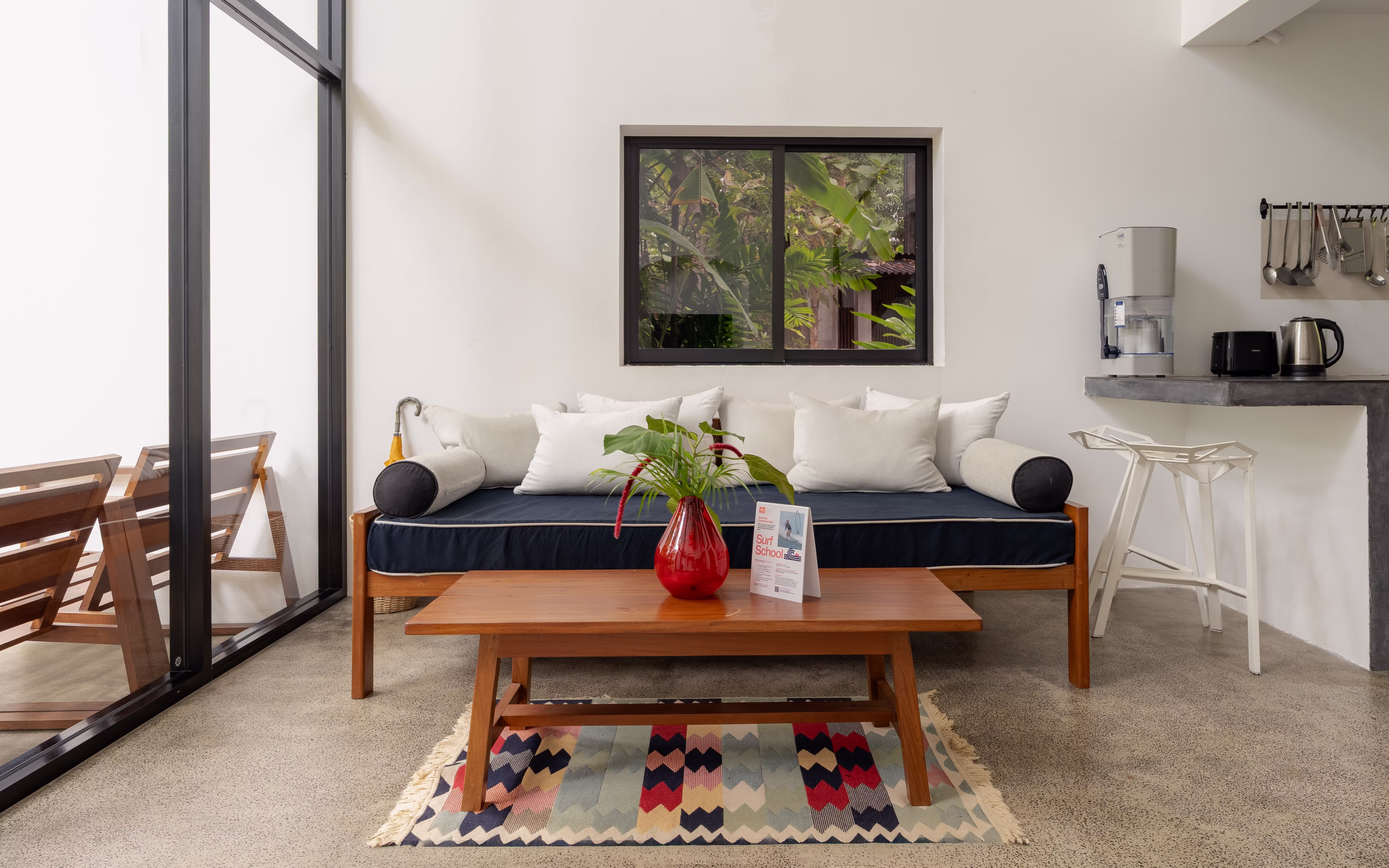 This house was built guided by the philosophy of simplicity and minimalism. Inspired to maximise the use of space, this house sleeps 3 as the large daybed downstairs doubles up as a single bed. The semi equipped kitchen comes with a gas stove to cook your favourite meals. This house features an indoor shower and a private tiled patio with plunge pool. It is the only home with a television using Chromecast.